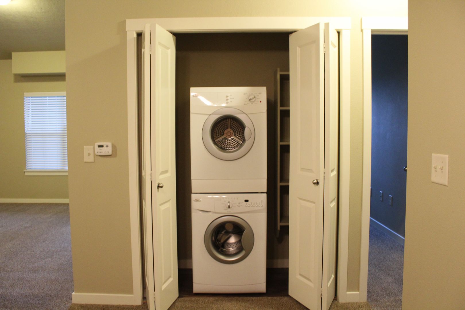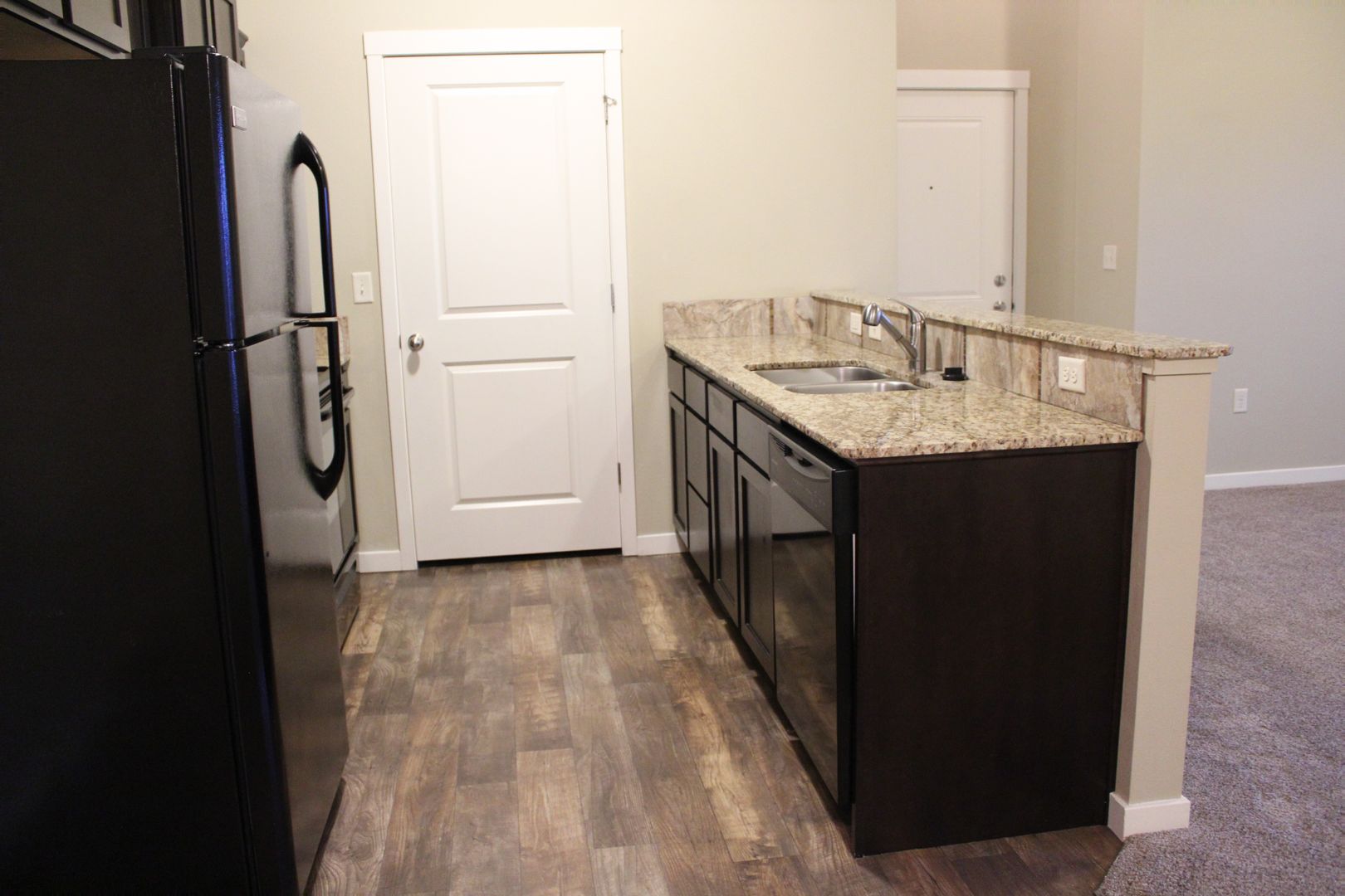 You will find that all our apartment homes include one of our 3 custom interior packages. Our custom interiors include upgraded GRANITE rough edge countertops, stainless steel in-set sink, retractable kitchen faucet, custom cabinetry, carpet with 8lb pad, warm interior paint, large windows with natural light, black on black appliances with flattop cook range, icemaker, front Loading washer and dryer, private patio or balcony with storage, and an abundance of closet space.